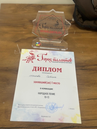 1 место в муниципальном конкурсе "Город талантов". Ученица 4 а класса Тогоева Сабина